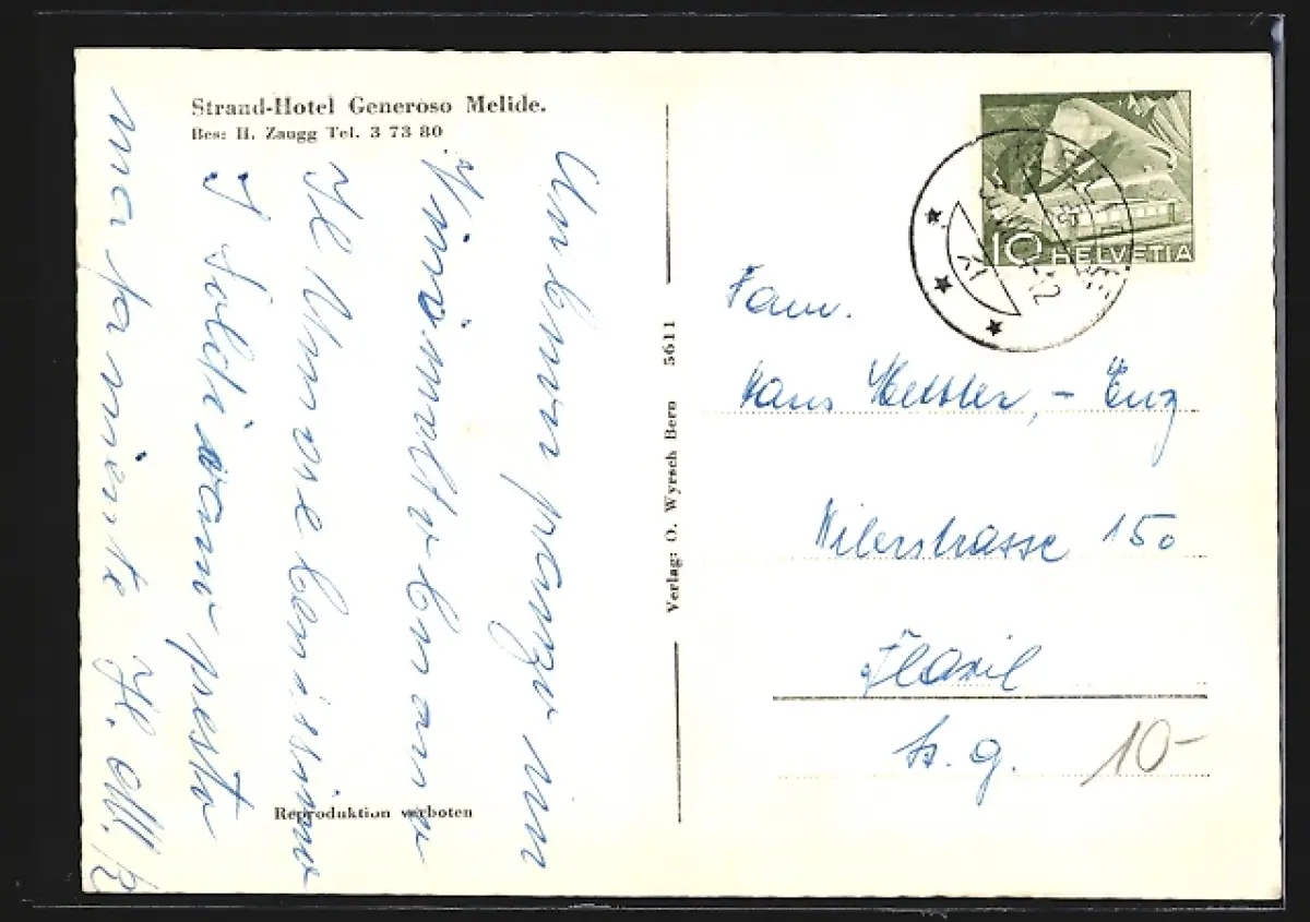 AK Melide, Strand-Hotel Generoso, Bes. H. Zaugg
