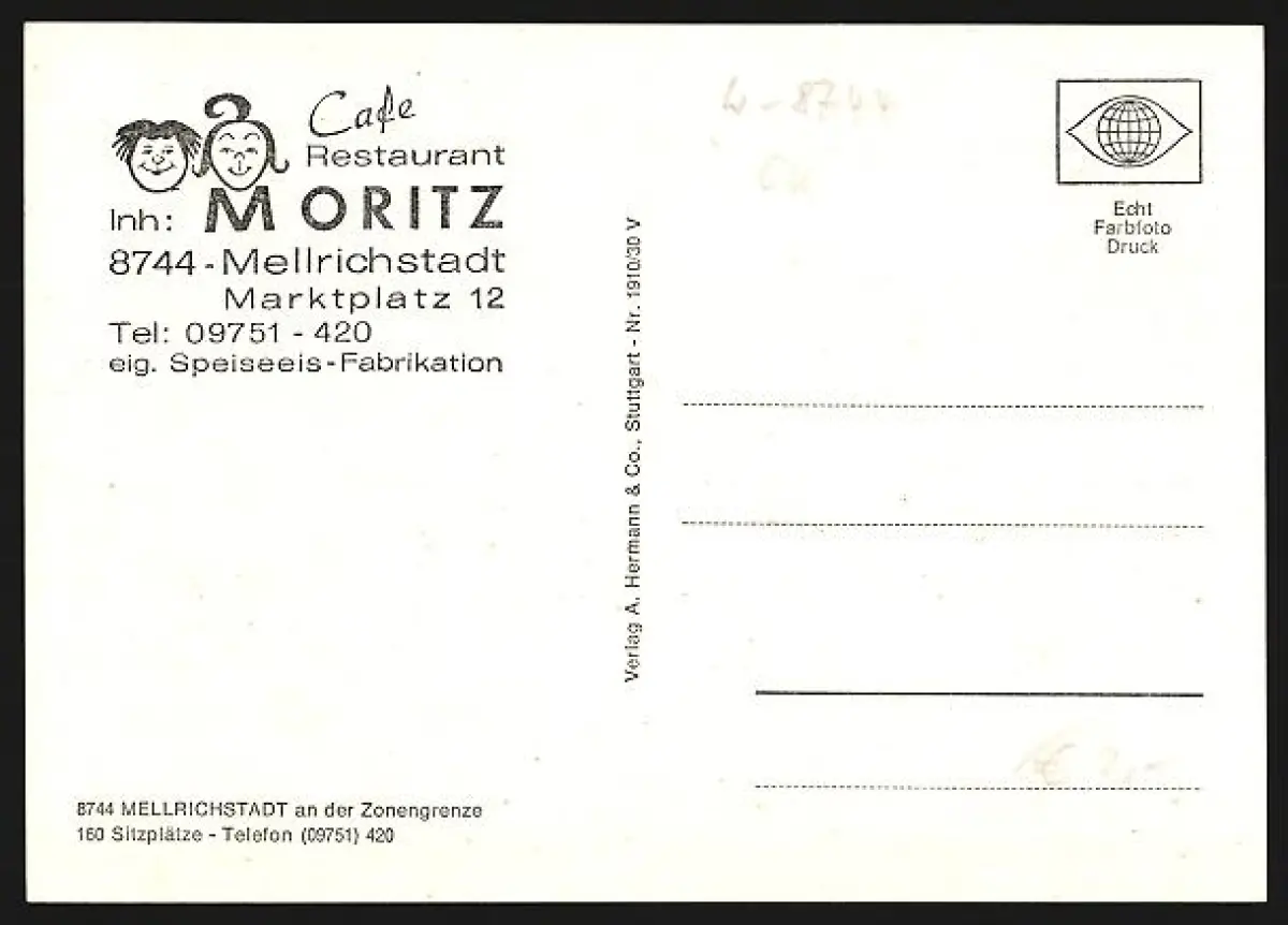 AK Mellrichstadt, Cafe-Restaurant-Eisfabrikation Moritz, Inh. Josef Moritz, Innenansichten