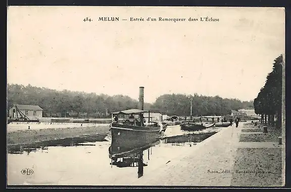 AK Melun, Entrée d`un remorqueur dans l`écluse