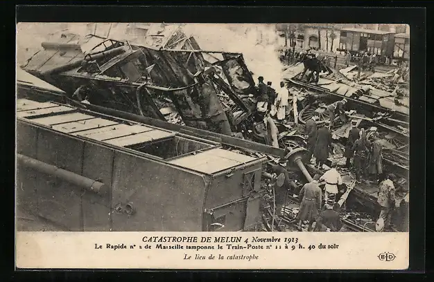 AK Melun, Le lieu de la catastrophe 1913, Eisenbahnkatastrophe