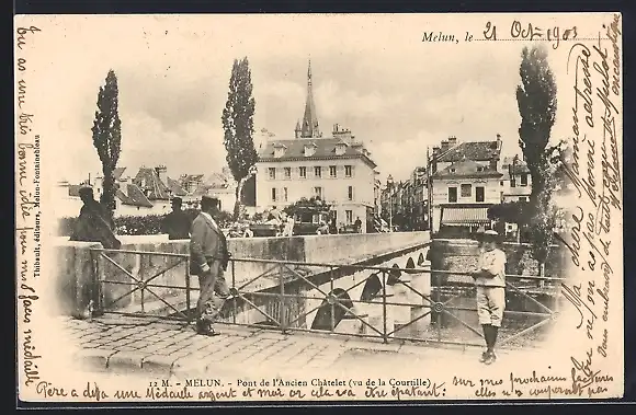AK Melun, Pont de l`Ancien Châtelet, vue de la Courtille