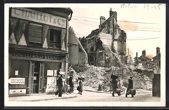 AK Melun /S.-et-M., Grande Rue Saint-Etienne, Les Ruines