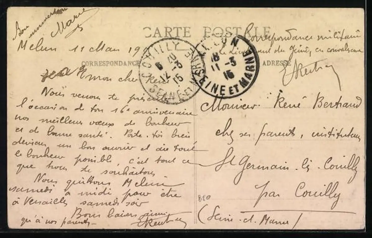 gelaufen 1915, Stempelspur, Eckknick oben rechts, guter Zustand