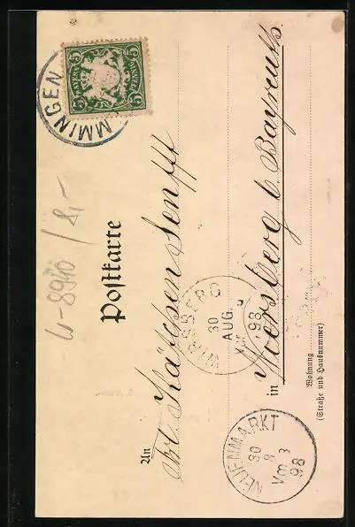 alte Ansichtskarte, gelaufen 1898, guter Zustand
