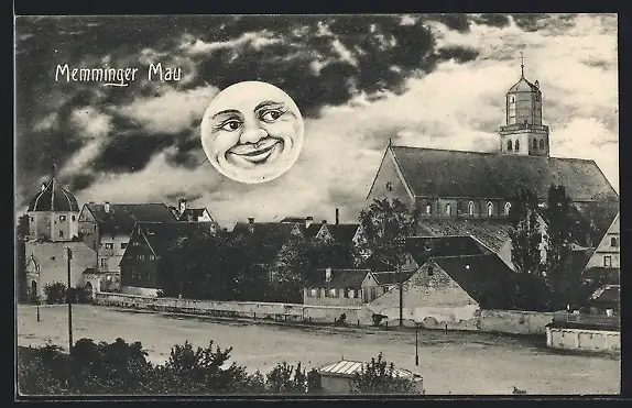 AK Memmingen, Memminger Mau, Strassenpartie mit Kirche