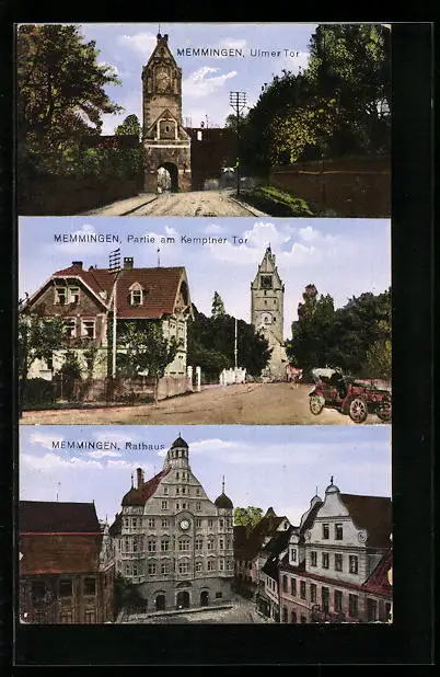 AK Memmingen, Ulmer und Kemptner Tor, Rathaus