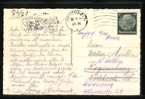 alte Ansichtskarte, gelaufen 1939, guter Zustand
