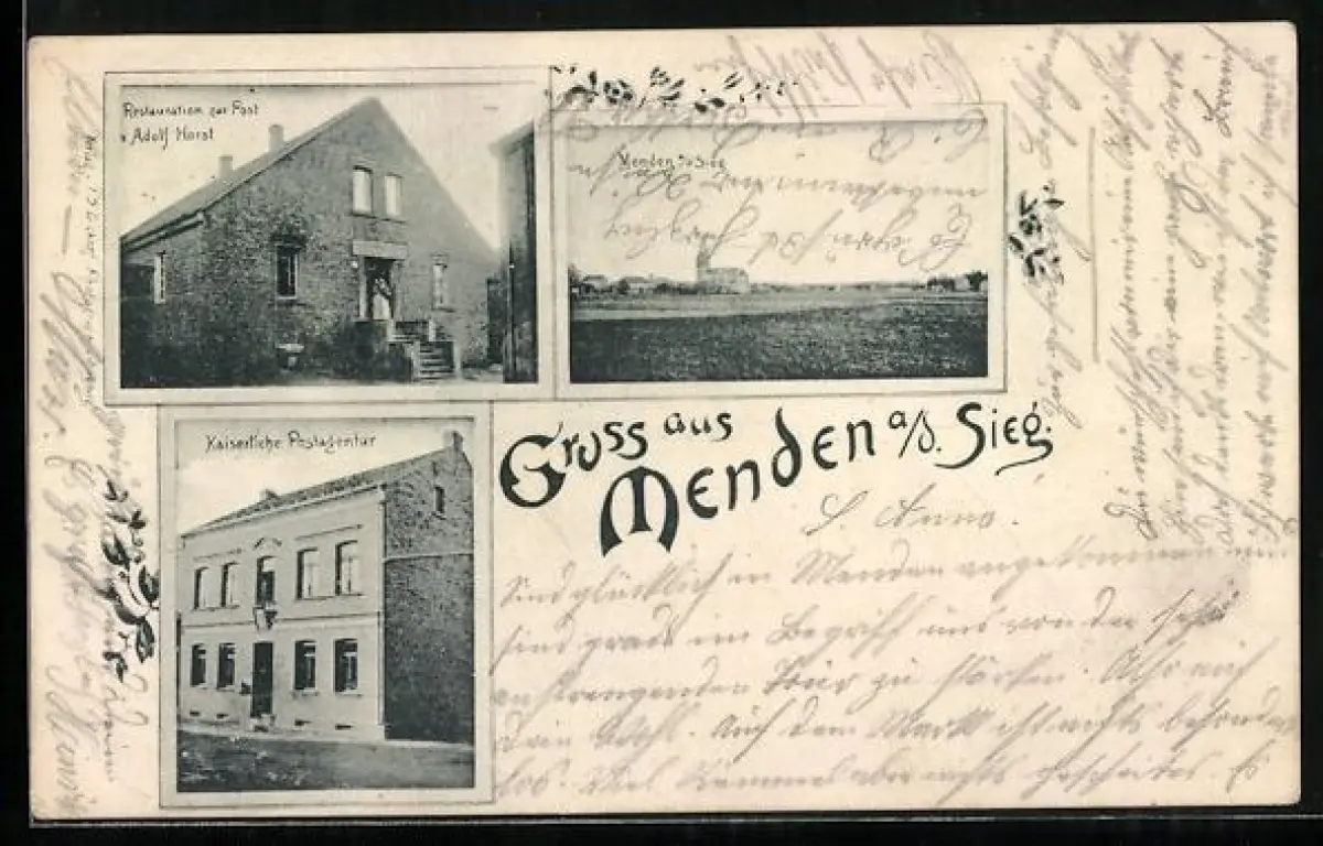 AK Menden a. d. Sieg, Restaurant zur Post v. Adolf Horst, Kaiserliche Postagentur