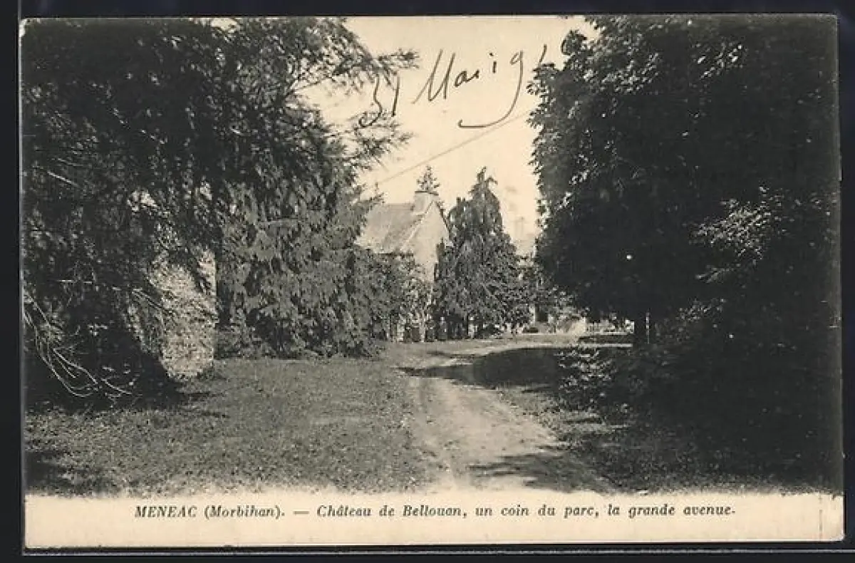 AK Ménéac /Morbihan, Château de Bellouan, un coin du parc, la grande avenue
