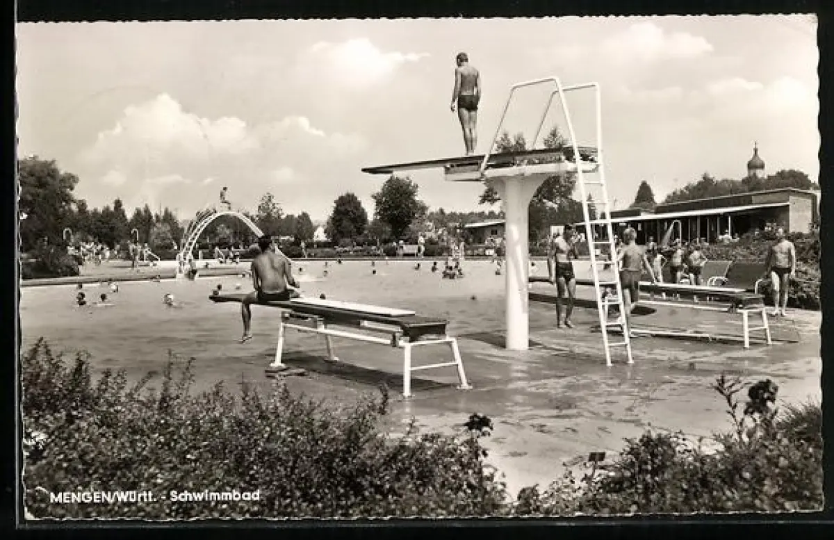 AK Mengen /Württ., Sprungturm im Schwimmbad