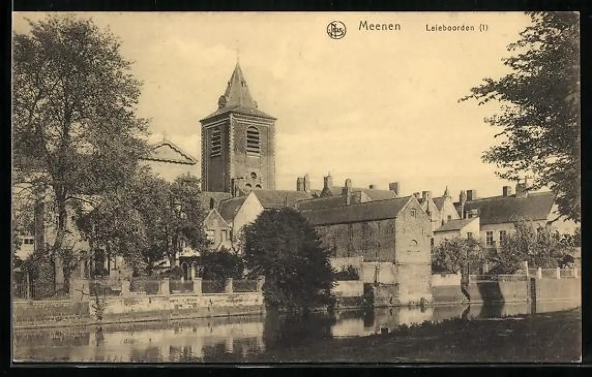 AK Menin, Cote de la Lys, Partie an der Lys neben der Kirche