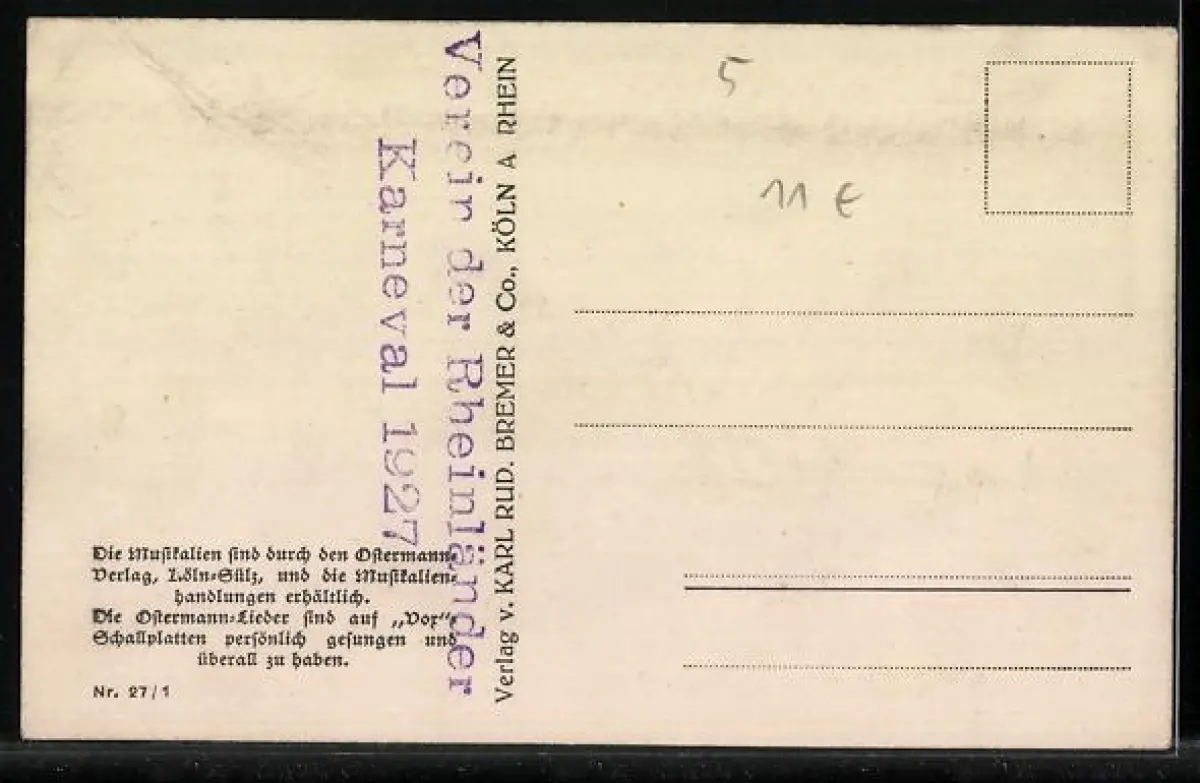 AK Menschen in und vor einem brennenden Haus, Text des Kölner Liedes Kut erop! Kut erop! Kut erop!