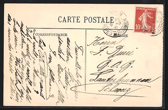 gelaufen 1910, Eckknicke li. oben, guter Zustand