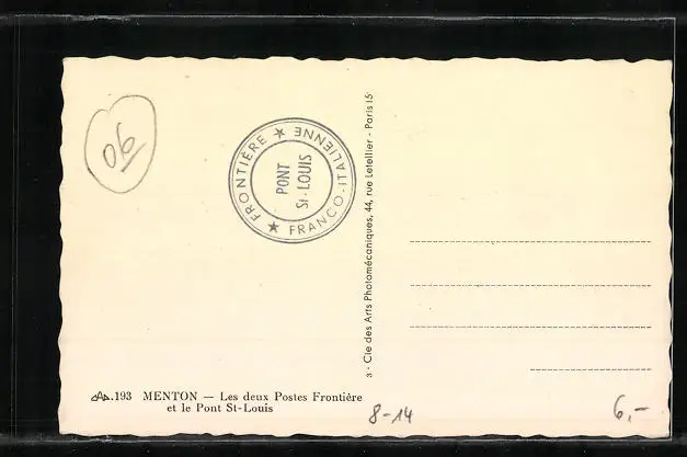 AK Menton, Les deux Postes Frontière et le Pont St-Louis, Grenze