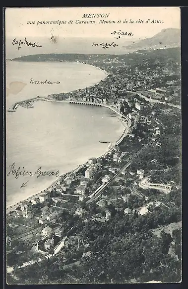 AK Menton, vue panoramique de Garavan, Menton et de la côte d`Azur