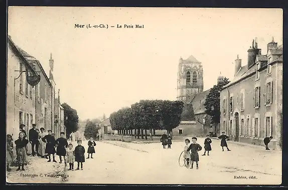 AK Mer, Le Petit Mail avec enfants jouant dans la rue et vue sur l`église