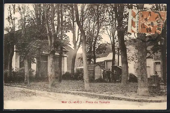 AK Mer, Place du Temple avec arbres et bâtiments adjacents