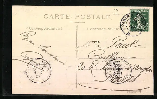 alte Ansichtskarte, gelaufen 1908, Stempelspur, sonst guter Zustand