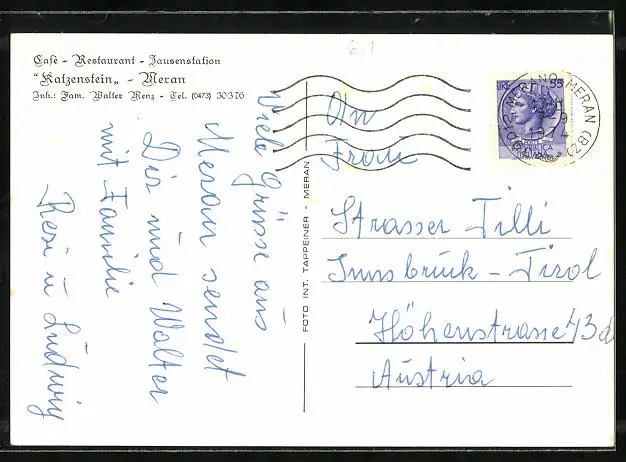 AK Meran, Cafe-Restaurant-Jausenstation Katzenstein, Ortsansicht