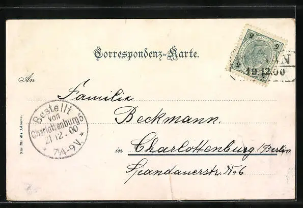 alte Ansichtskarte, gelaufen 1900, Einriss unten mittig, guter Zustand
