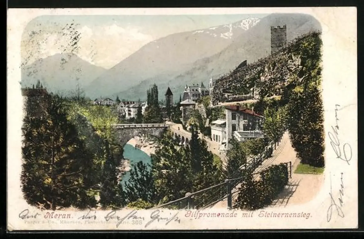 AK Meran, Gilfpromenade mit Steinernemsteg