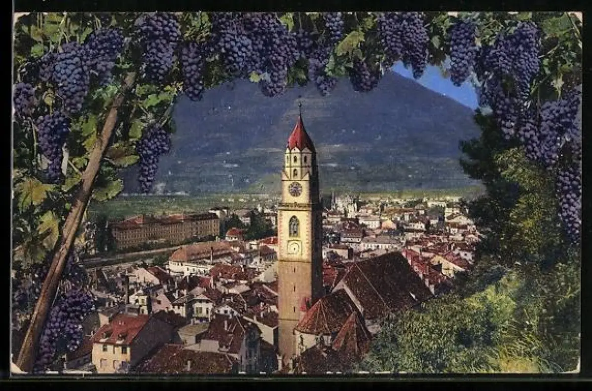 AK Meran, Ortsansicht mit Kirche