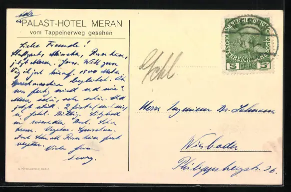 AK Meran, Palasthotel, vom Tappeinerweg gesehen