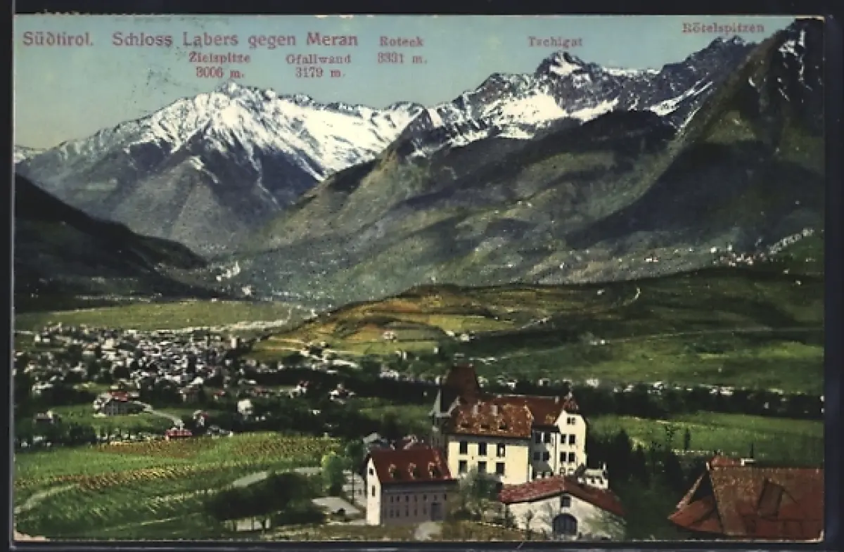 AK Meran /Südtirol, Schloss Labers, Zielspitze, Gfwallwand, Roteck, Tschigat, Rötelspitzen