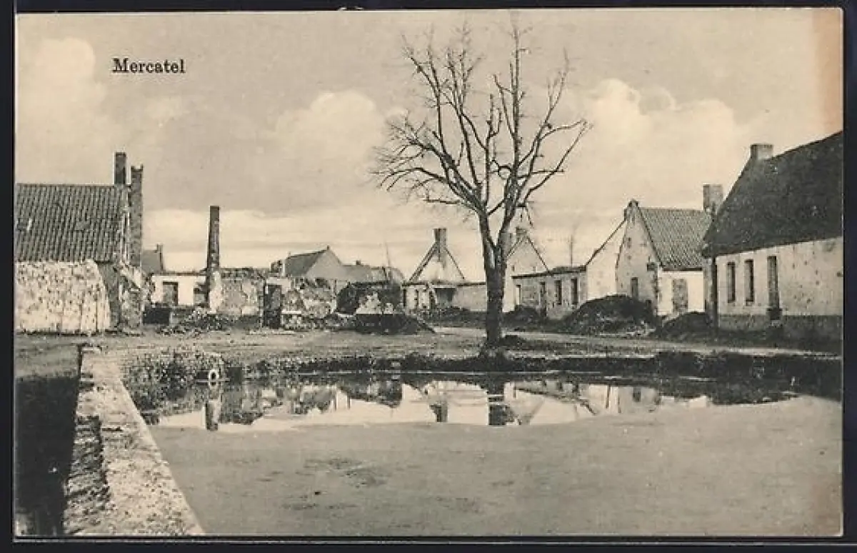 AK Mercatel, Vue du village avec étang et arbres en hiver
