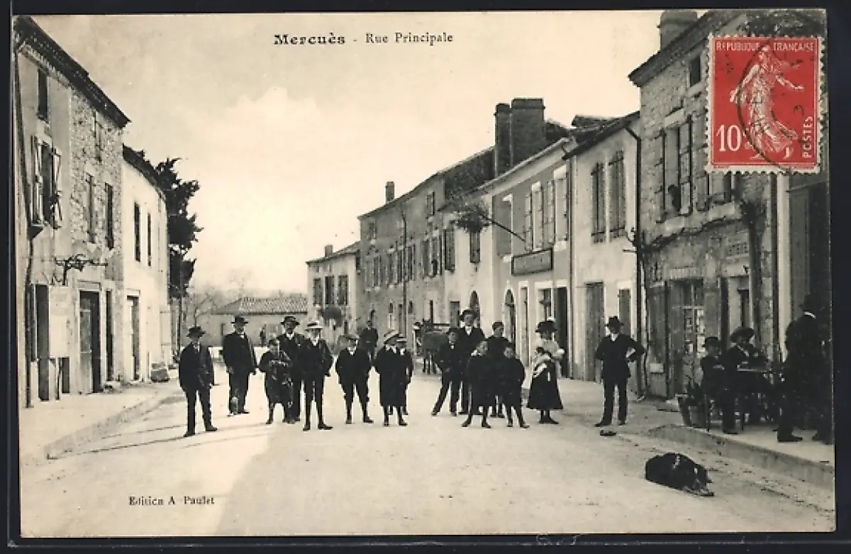 AK Mercuès, Rue Principale avec habitants rassemblés