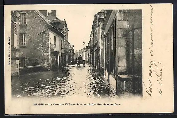 AK Merhun, La Crue de l`Yèvre, Janvier 1910, Rue Jeanne-d`Arc