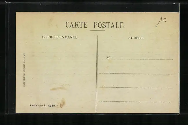Personenbezogene Daten auf der Rückseite der Karte wurden durch blauen Textmarker unkenntlich gemacht. Die blauen Stellen sind auf die Vorderseite durchgeweicht und wirken sich negativ auf das Postkartenfoto aus