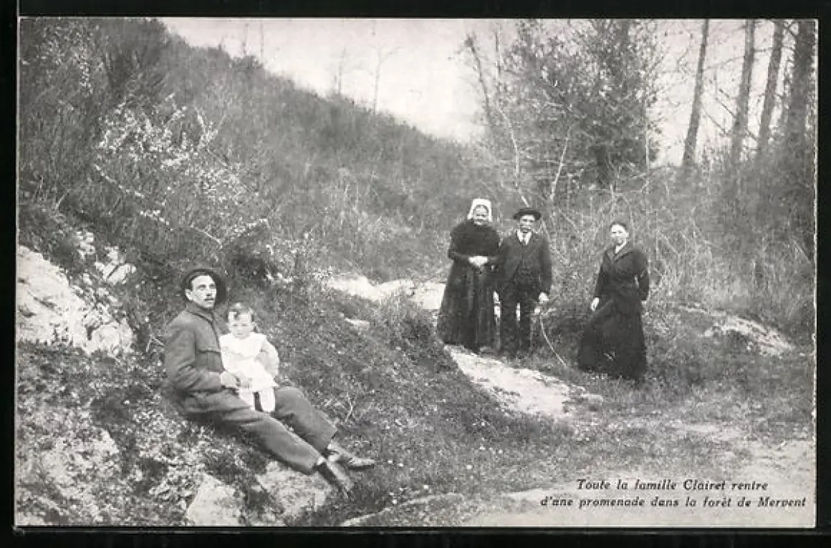 AK Mervent, Toute la famille Clairet rentre d`une promenade dans la forêt de Mervent, Blinder mit einem Kleinkind