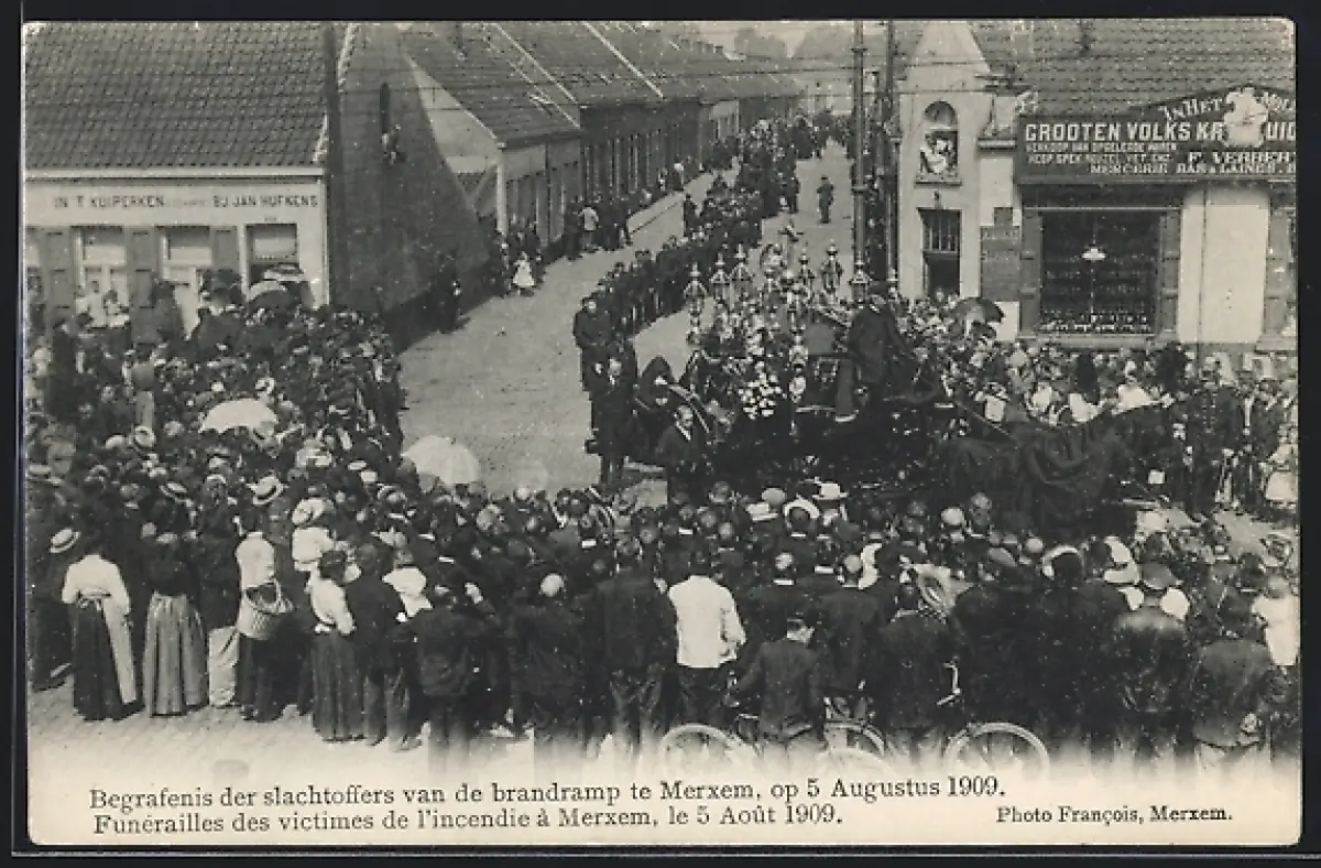 AK Merxem, Begrafenis det slachtoffers van de brandramp te Merxem, 1909
