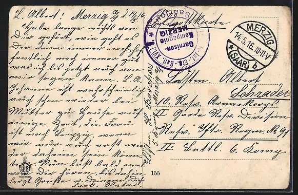 gelaufen 1916, Eckknicke li. und oben re., guter Zustand