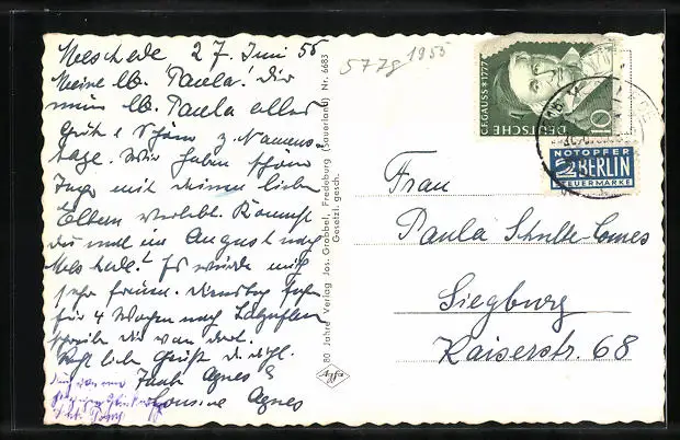 alte Ansichtskarte, gelaufen 1956, guter Zustand