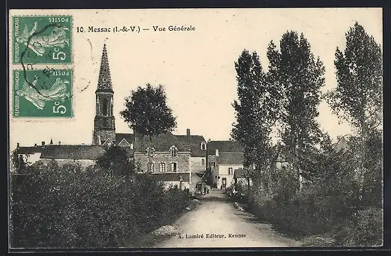 AK Messac, Vue générale du village avec clocher et maisons entourées d`arbres