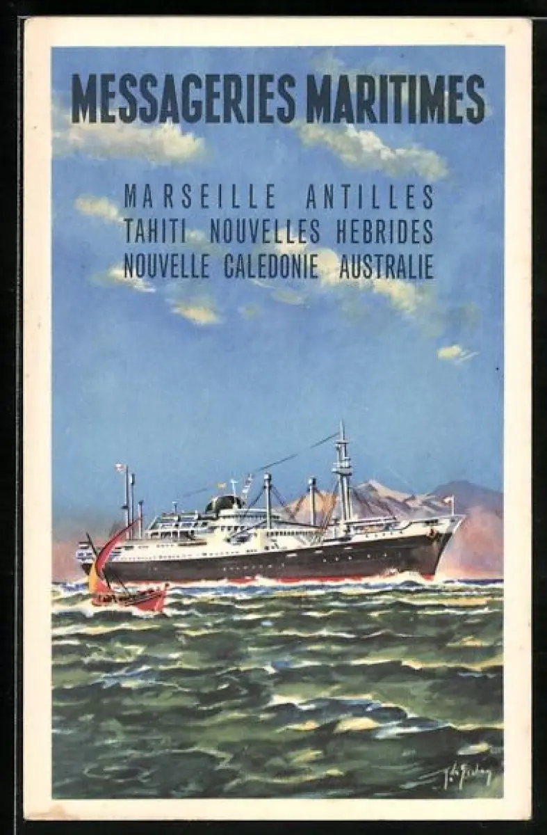 AK Messageries Maritimes, Passagierschiff vor der Küste
