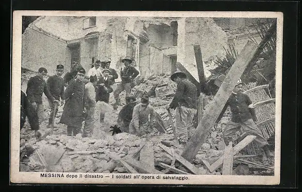 AK Messina, I soldati all`opera di salvataggio, Erdbeben