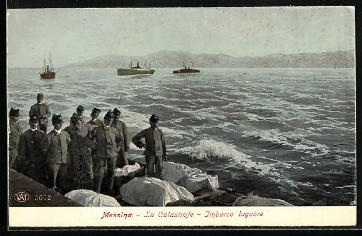 AK Messina, La Catastrofe, Imbarco lugubre, Erdbeben
