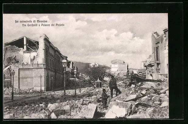 AK Messina, La catastrofe, Via Garibaldi e Palazzo del Prefetto, Erdbeben