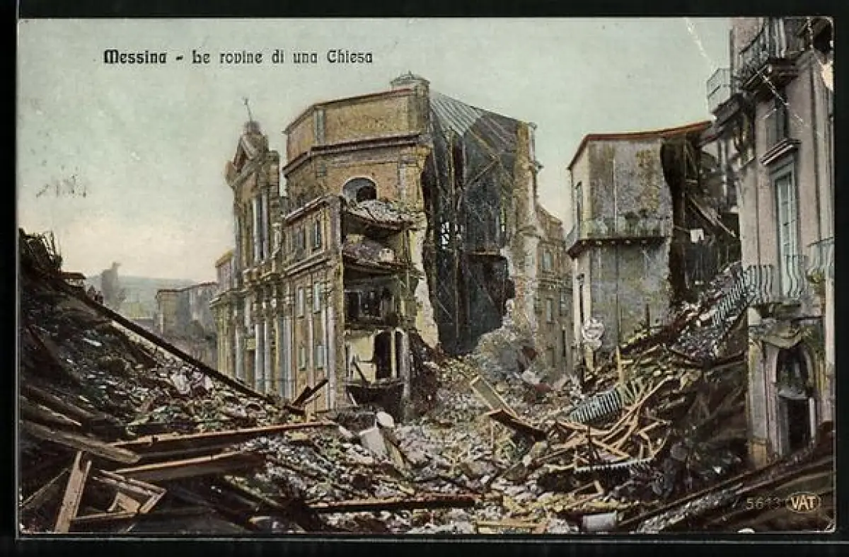 AK Messina, Le rovine di una Chiesa, Durch Erdbeben verwüstete Kirche
