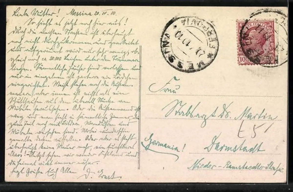 alte Ansichtskarte, gelaufen 1910, Eckknick re. oben, Bugspuren re. oben, Abriebspur re. oben, guter Zustand