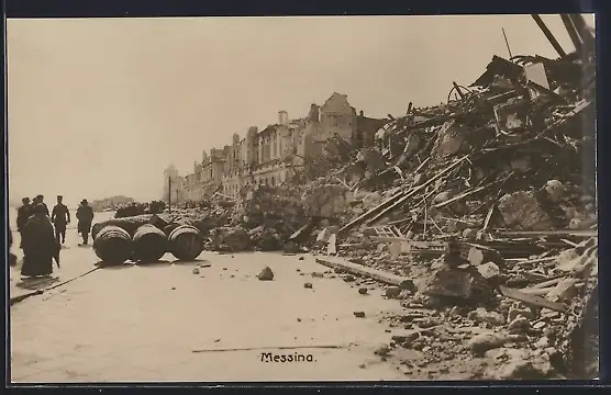 AK Messina, Strassenpartie an Gebäuderuinen nach Erdbeben
