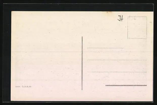 Personenbezogene Daten auf der Rückseite der Karte wurden durch blauen Textmarker unkenntlich gemacht. Die blauen Stellen sind auf die Vorderseite durchgeweicht und wirken sich negativ auf das Postkartenfoto aus