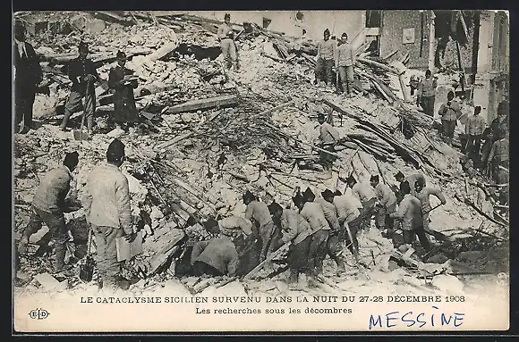 AK Messine, Le Cataclysme Sicilien survenu dans la nuit du 27-28 Decembre 1908, Les recherches sous les decombres