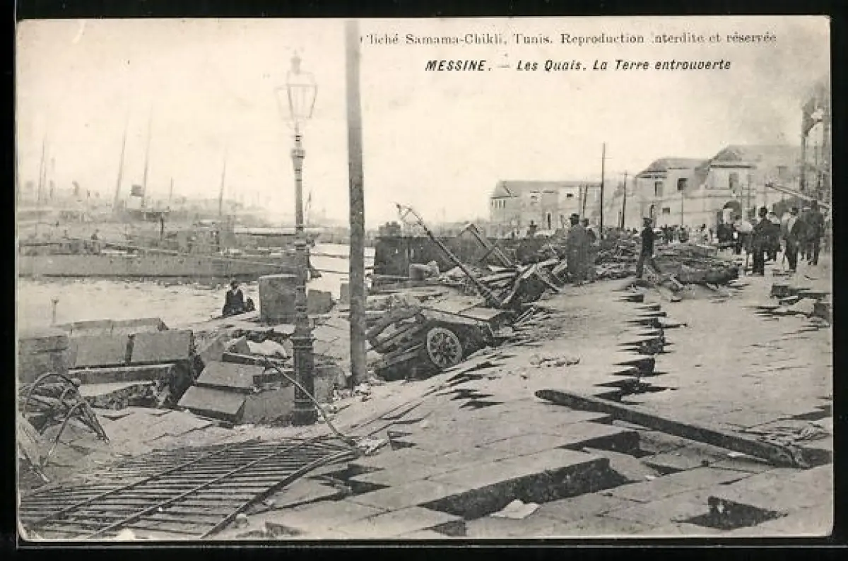 AK Messine, Les Quais, La Terre entrouverte, Erdbeben