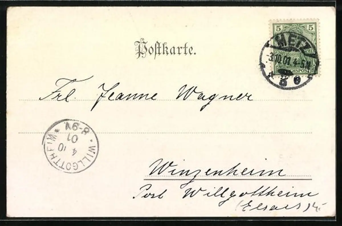alte Ansichtskarte, gelaufen 1901, Stempelspur, guter Zustand