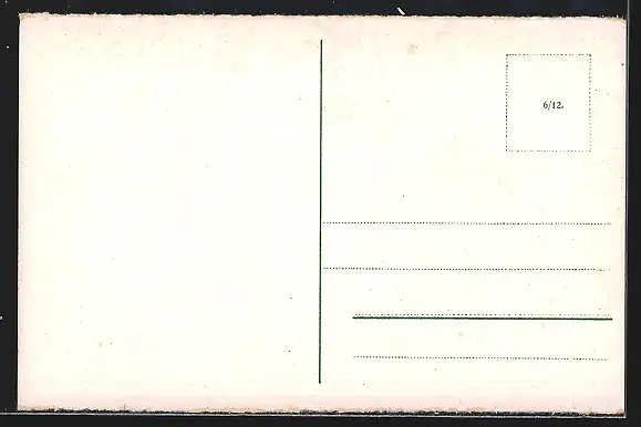 Personenbezogene Daten auf der Rückseite der Karte wurden durch blauen Textmarker unkenntlich gemacht. Die blauen Stellen sind auf die Vorderseite durchgeweicht und wirken sich negativ auf das Postkartenfoto aus