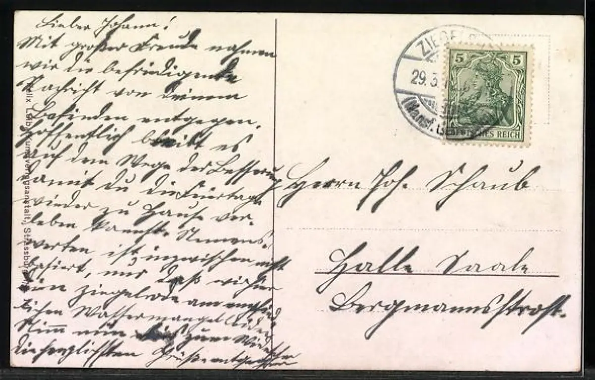 alte Ansichtskarte, gelaufen 1912, Stempelspur, guter Zustand